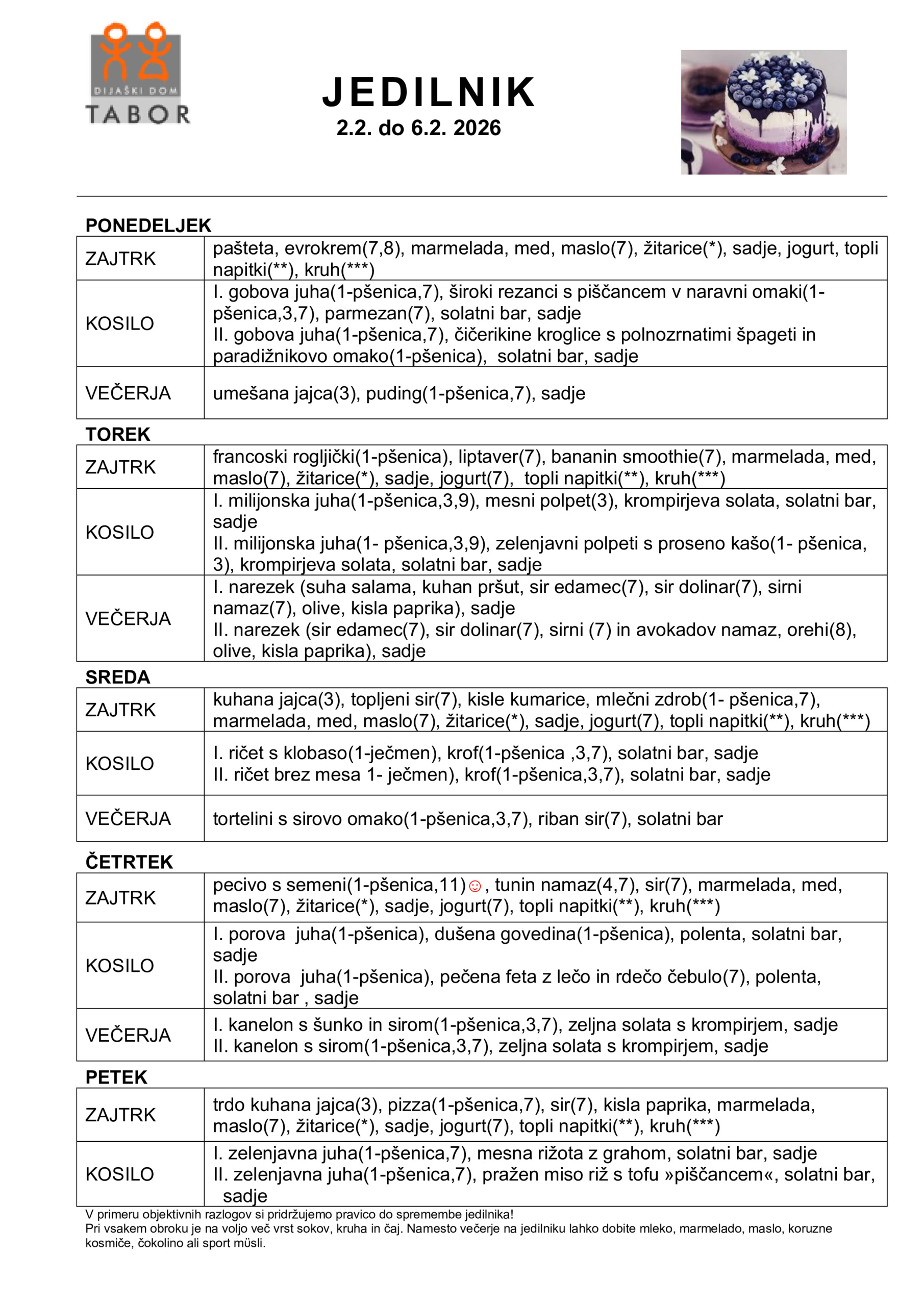 žitarice(*): čokoladni medvedki(1), koruzni kosmiči(1), sadni musli(1, 6, 8), čokoladni musli(1,7), čokolino(1, 7, 8)