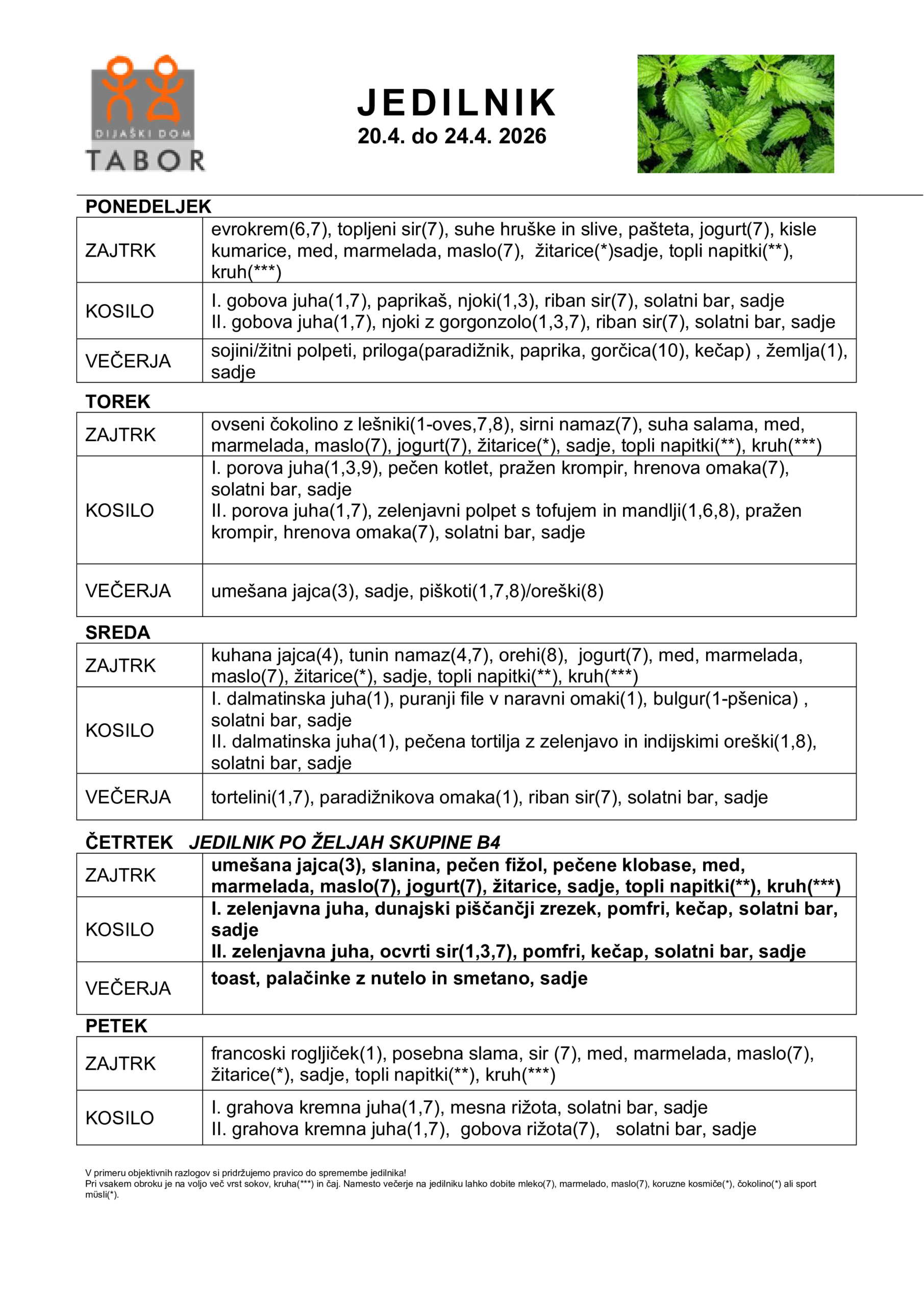 žitarice(*): čokoladni medvedki(1), koruzni kosmiči(1), sadni musli(1, 6, 8), čokoladni musli(1,7), čokolino(1, 7, 8)