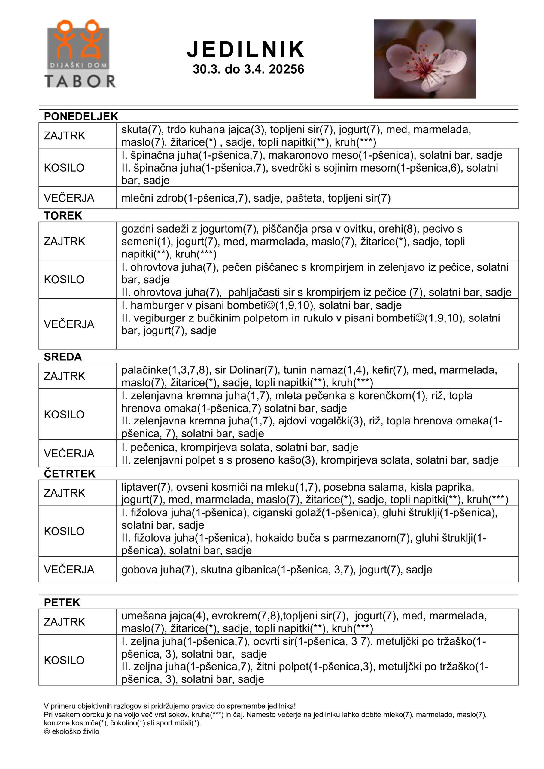 žitarice(*): čokoladni medvedki(1), koruzni kosmiči(1), sadni musli(1, 6, 8), čokoladni musli(1,7), čokolino(1, 7, 8)